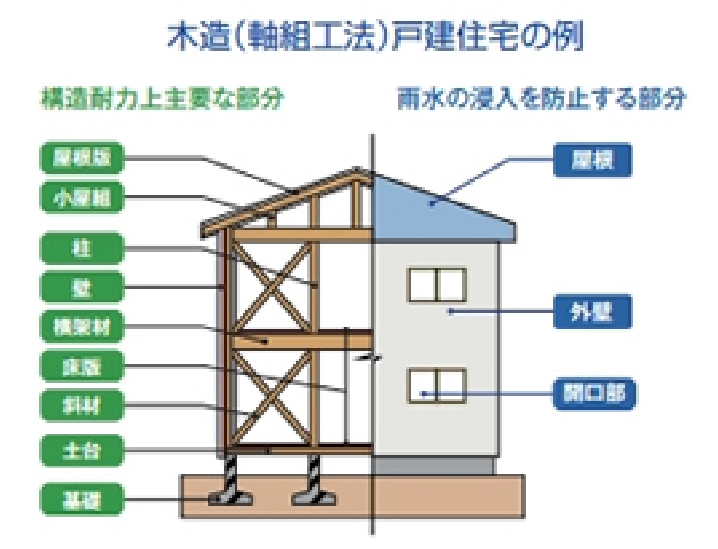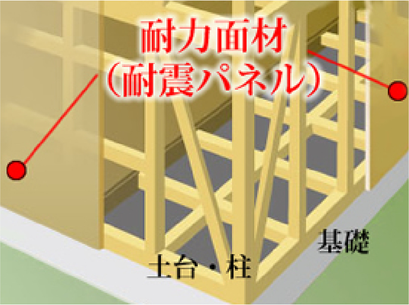 従来の木造軸組工法に、耐力面材(耐震パネル)を組み合わせ、基礎パッキン工法のベタ基礎、床は剛床工法とすることで、頑丈な構造を実現。