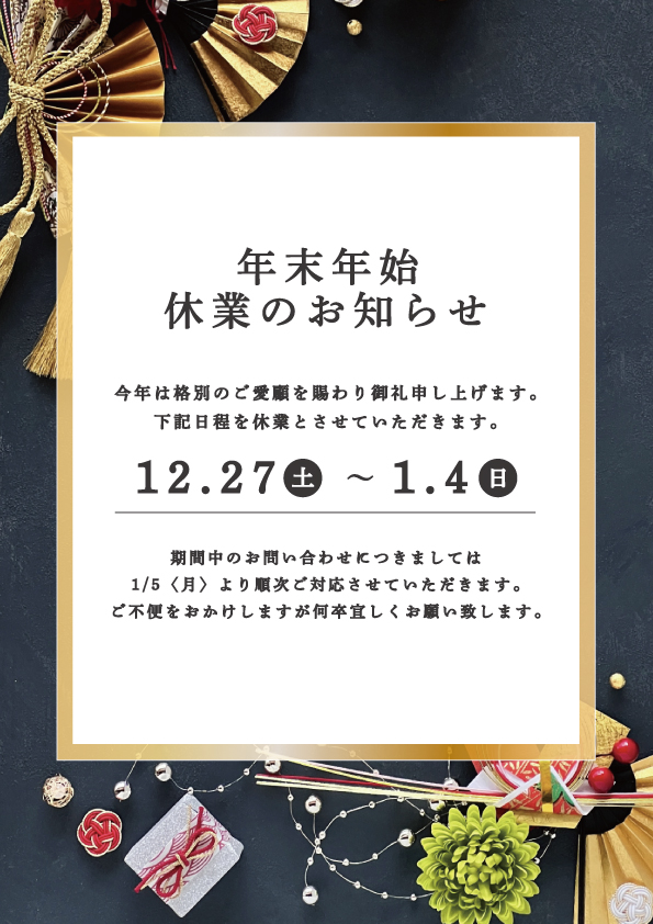 年末年始休業のお知らせ